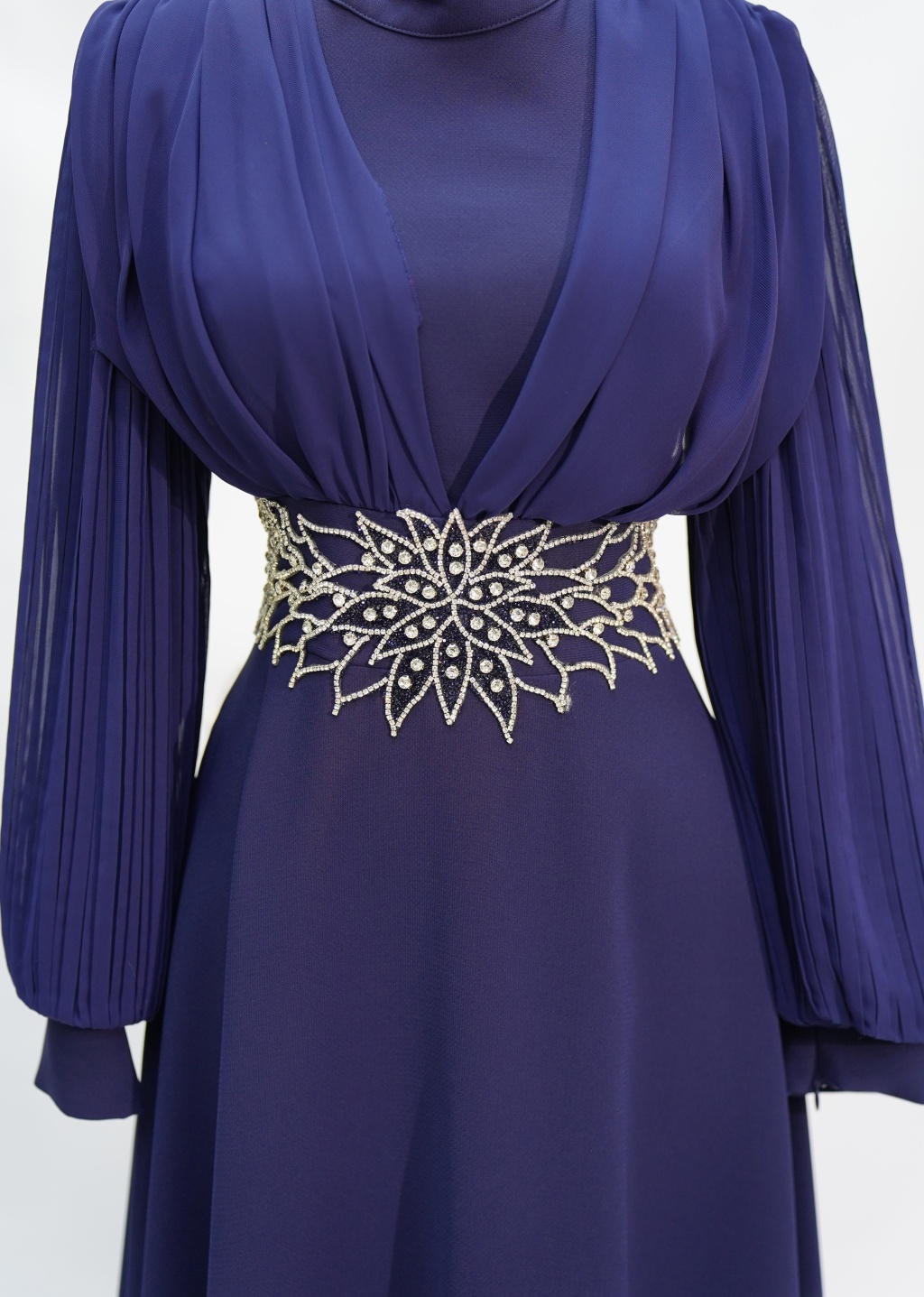 4149 MISRA KOL ŞİFON BEL TAŞLI ELBİSE MOR