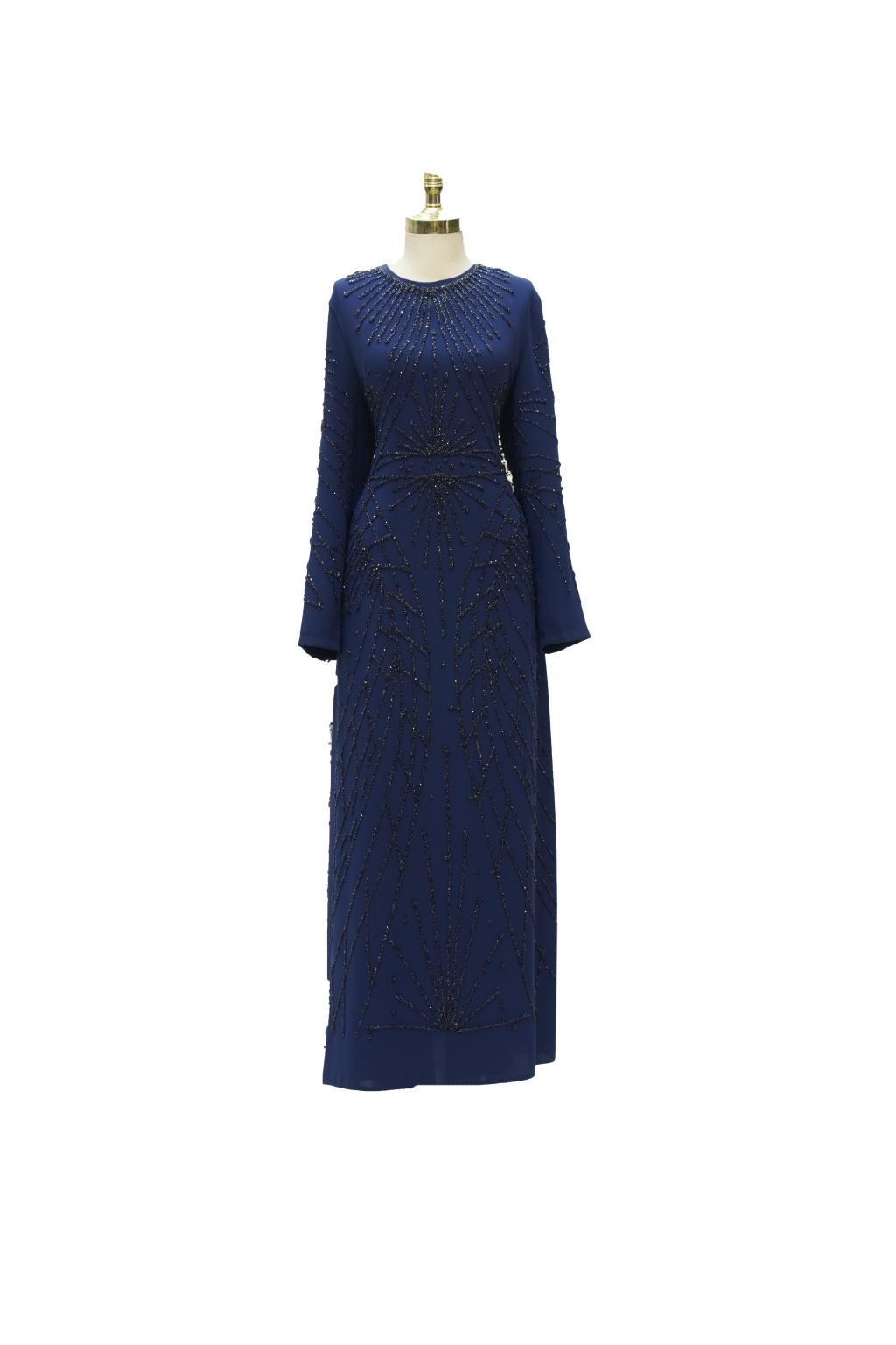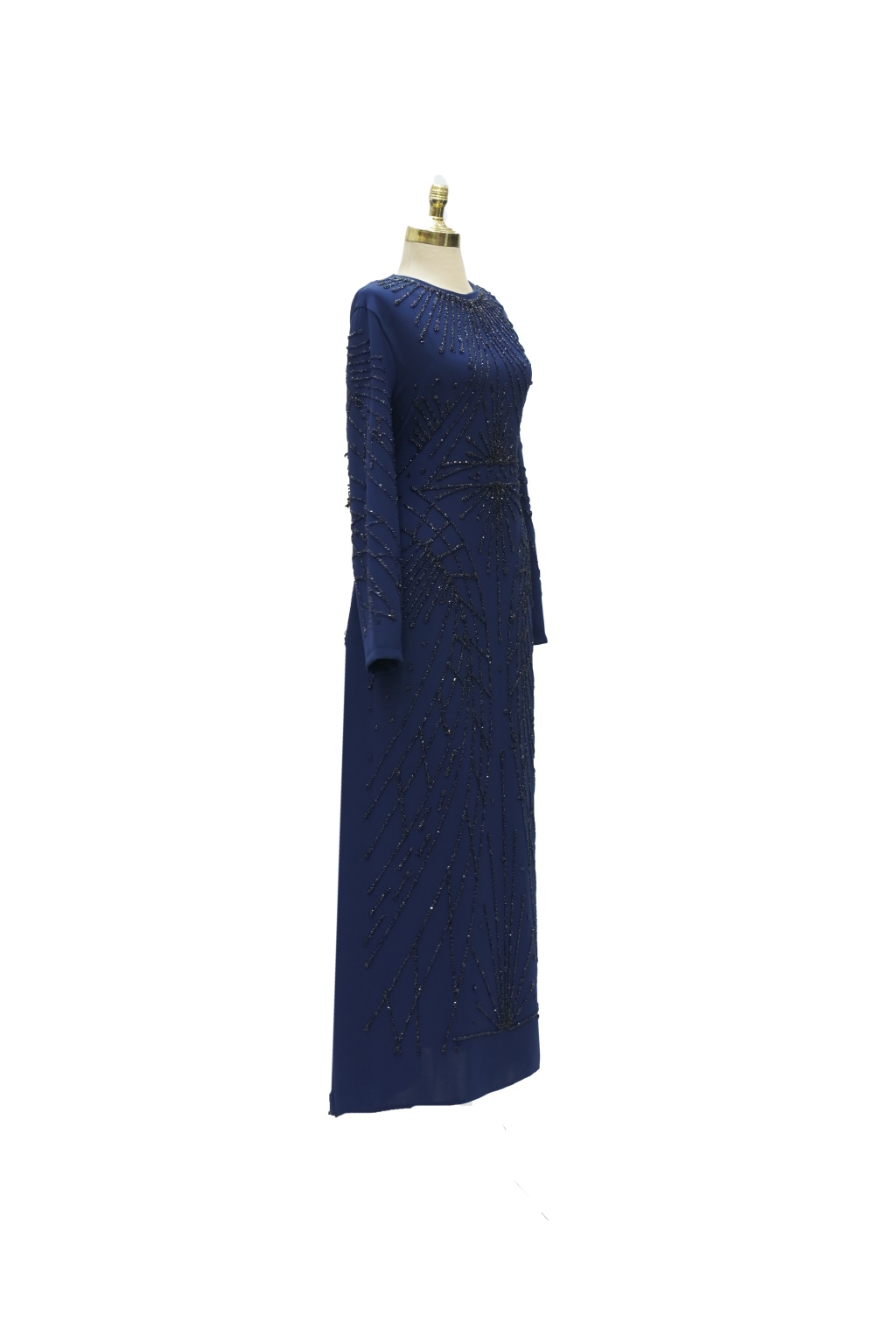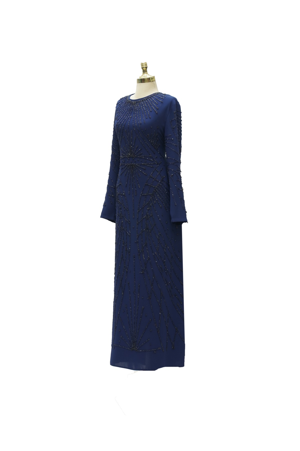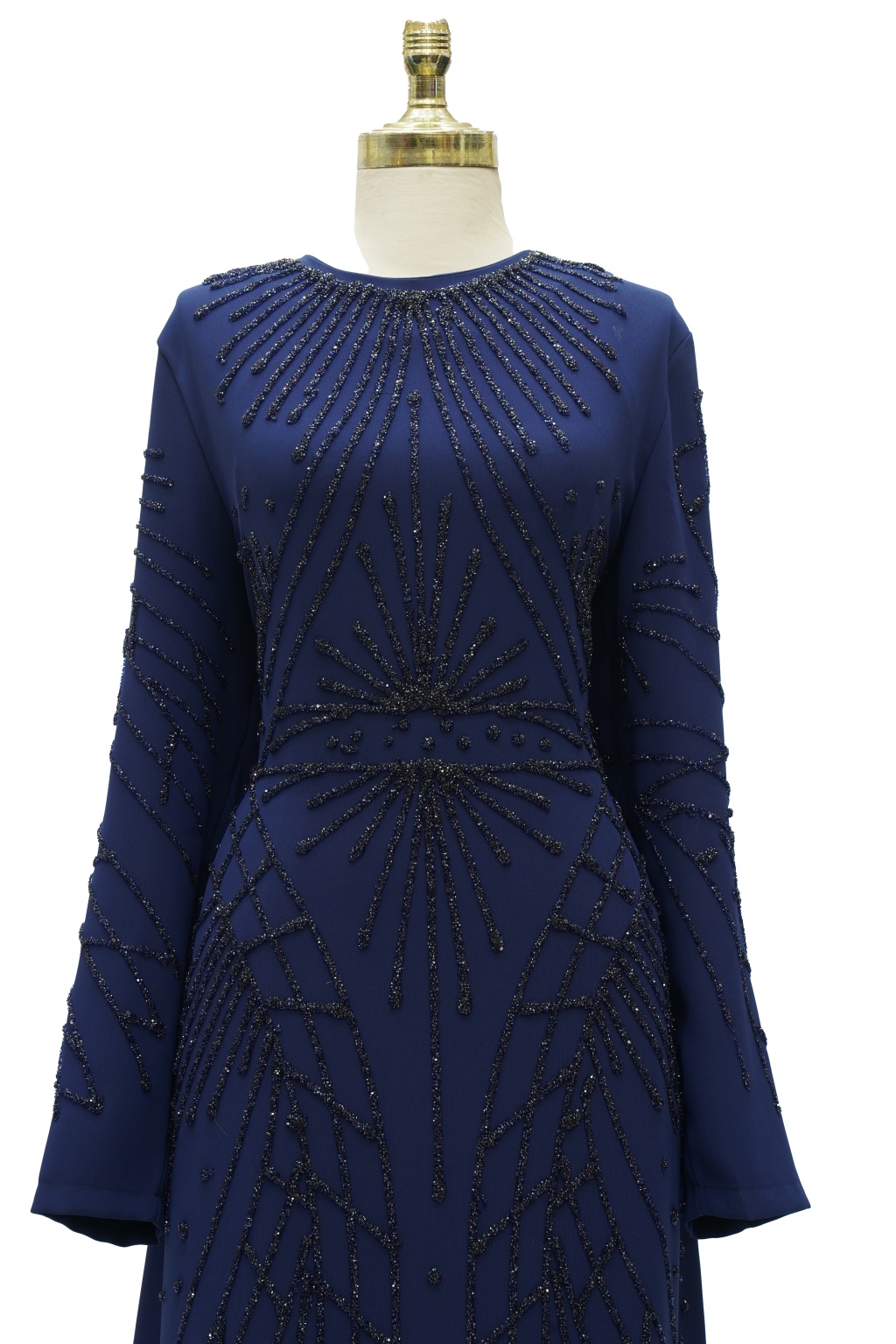 8122 MISRA FIRFIRLI TAŞ İŞLEME ELBİSE SAKS