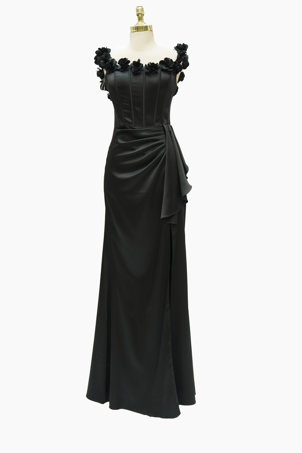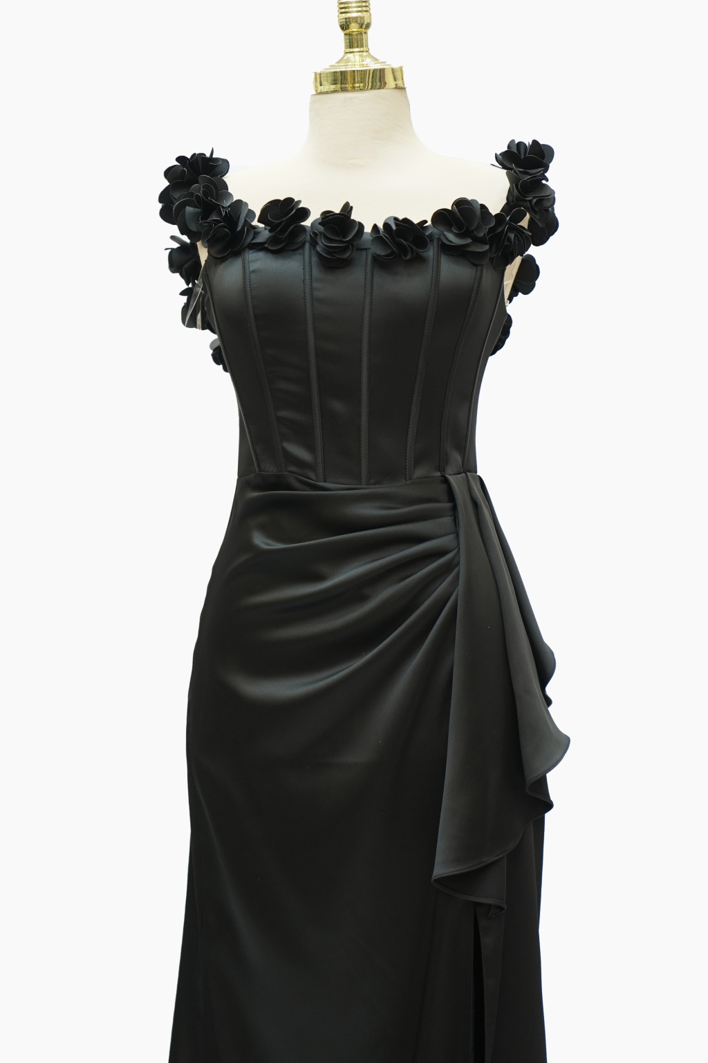 5760 NAZELLA GÜLLLÜ SATEN SİYAH