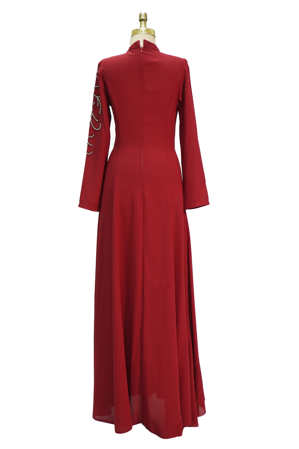 8122 MISRA FIRFIRLI TAŞ İŞLEME ELBİSE BORDO