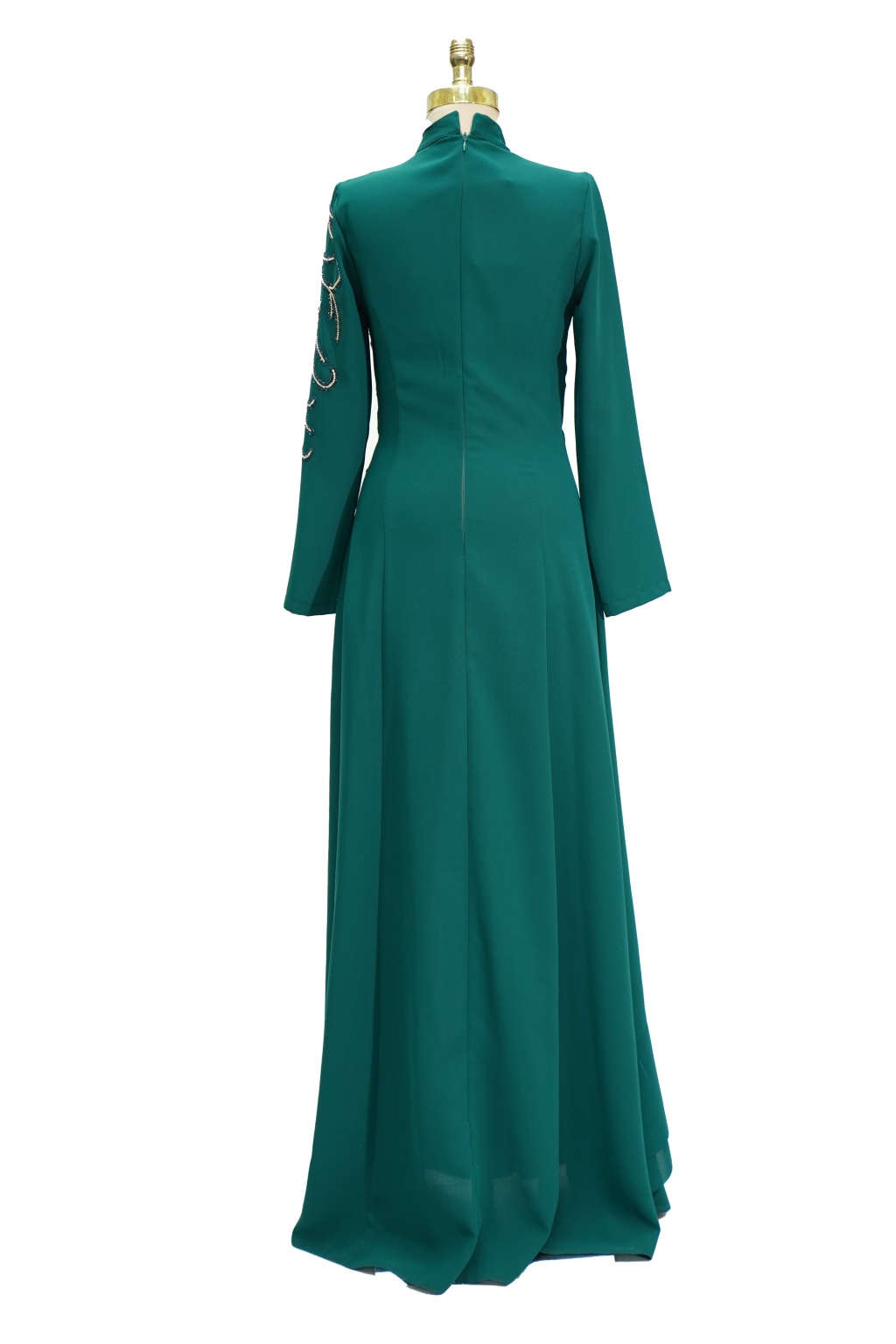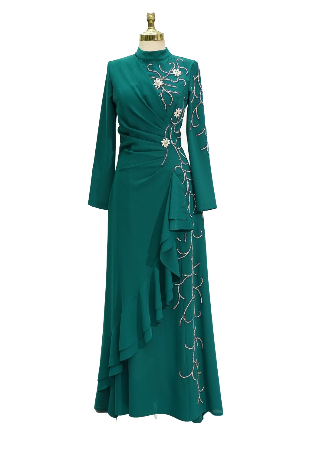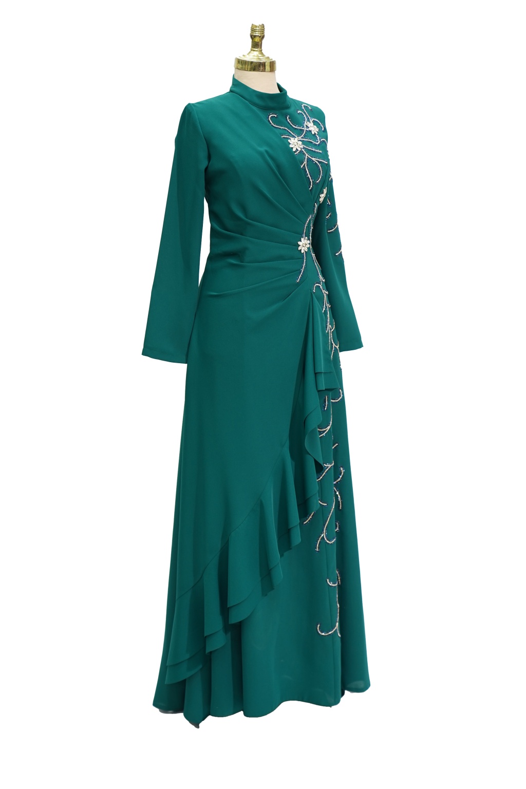 8122 MISRA FIRFIRLI TAŞ İŞLEME ELBİSE ZÜMRÜT