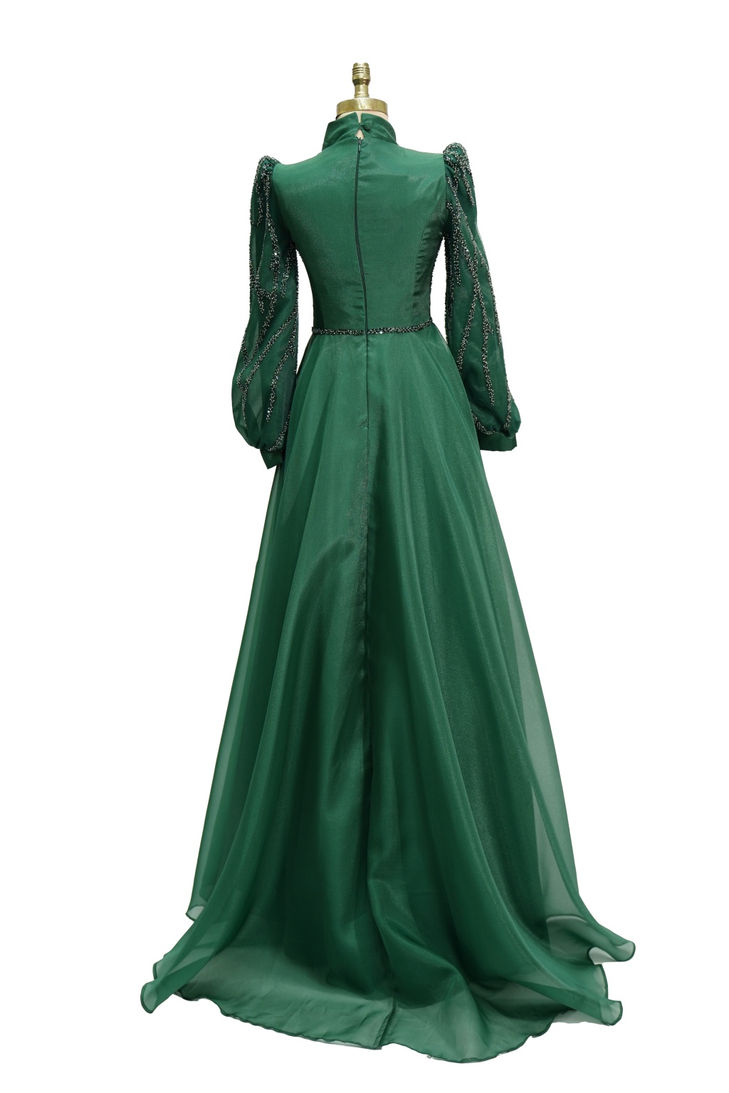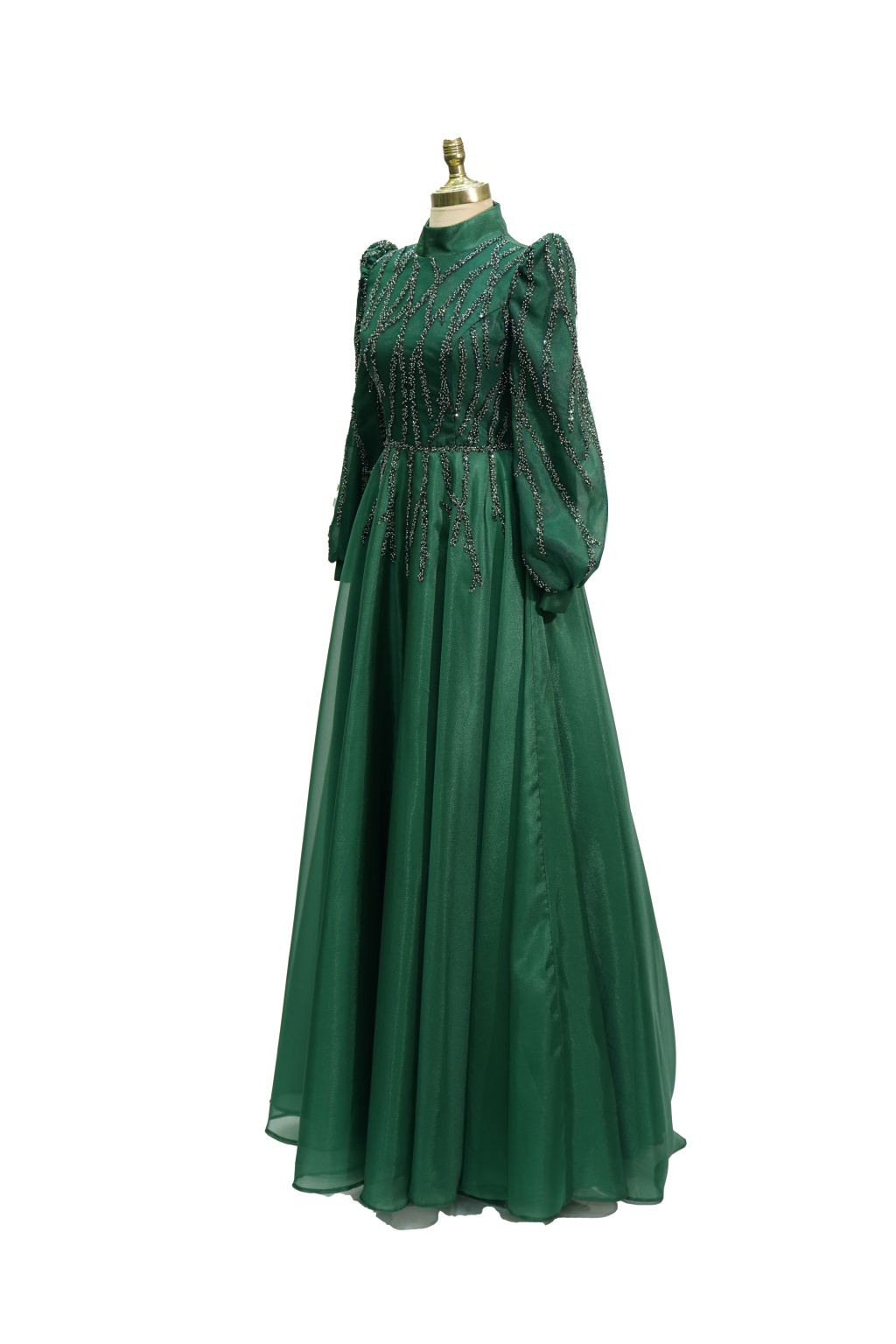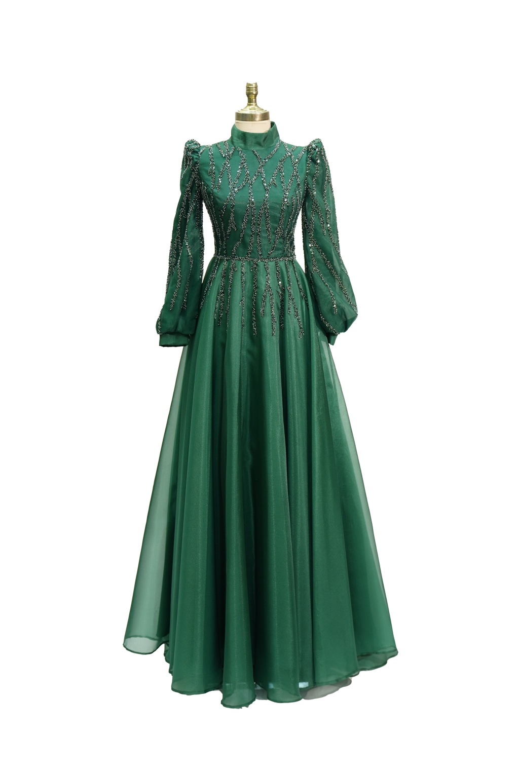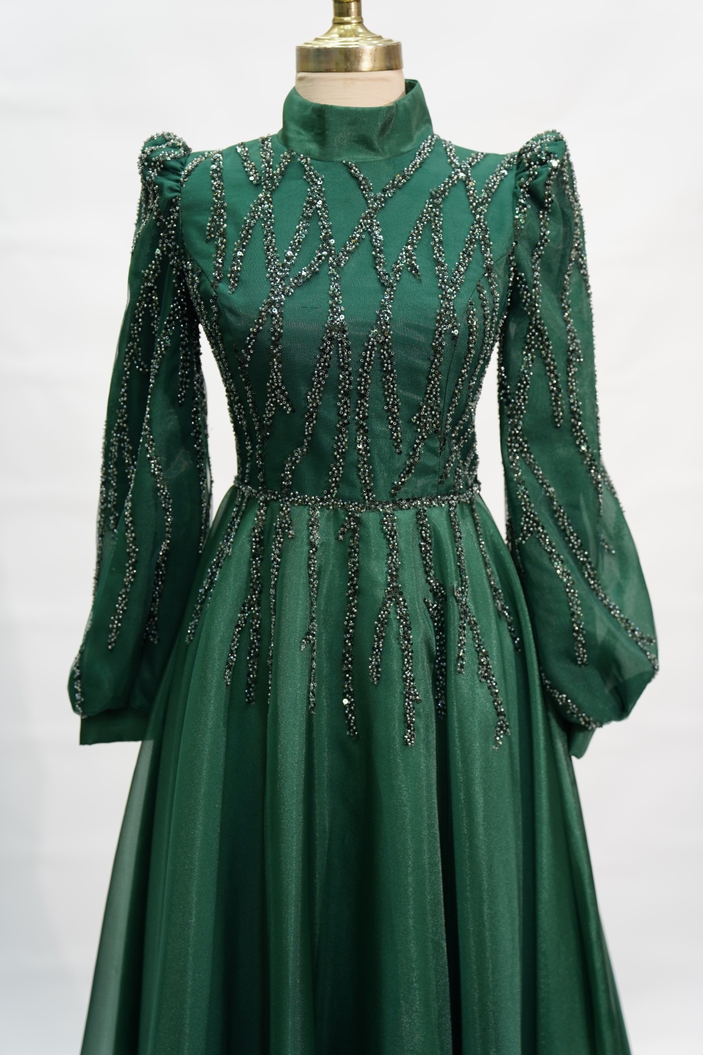 8122 MISRA FIRFIRLI TAŞ İŞLEME ELBİSE ZÜMRÜT